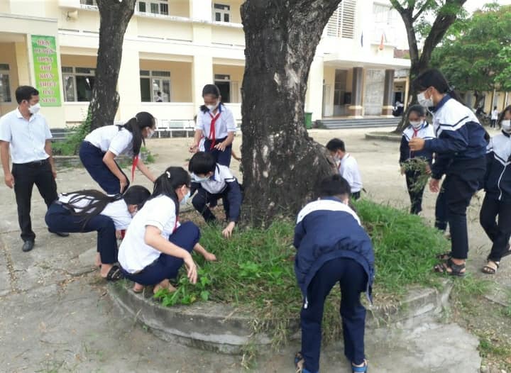 Học sinh các lớp chuẩn bị cho năm học mới, các em đã vệ sinh sạch sẽ sân trường và chăm sóc, trồng thêm hoa.