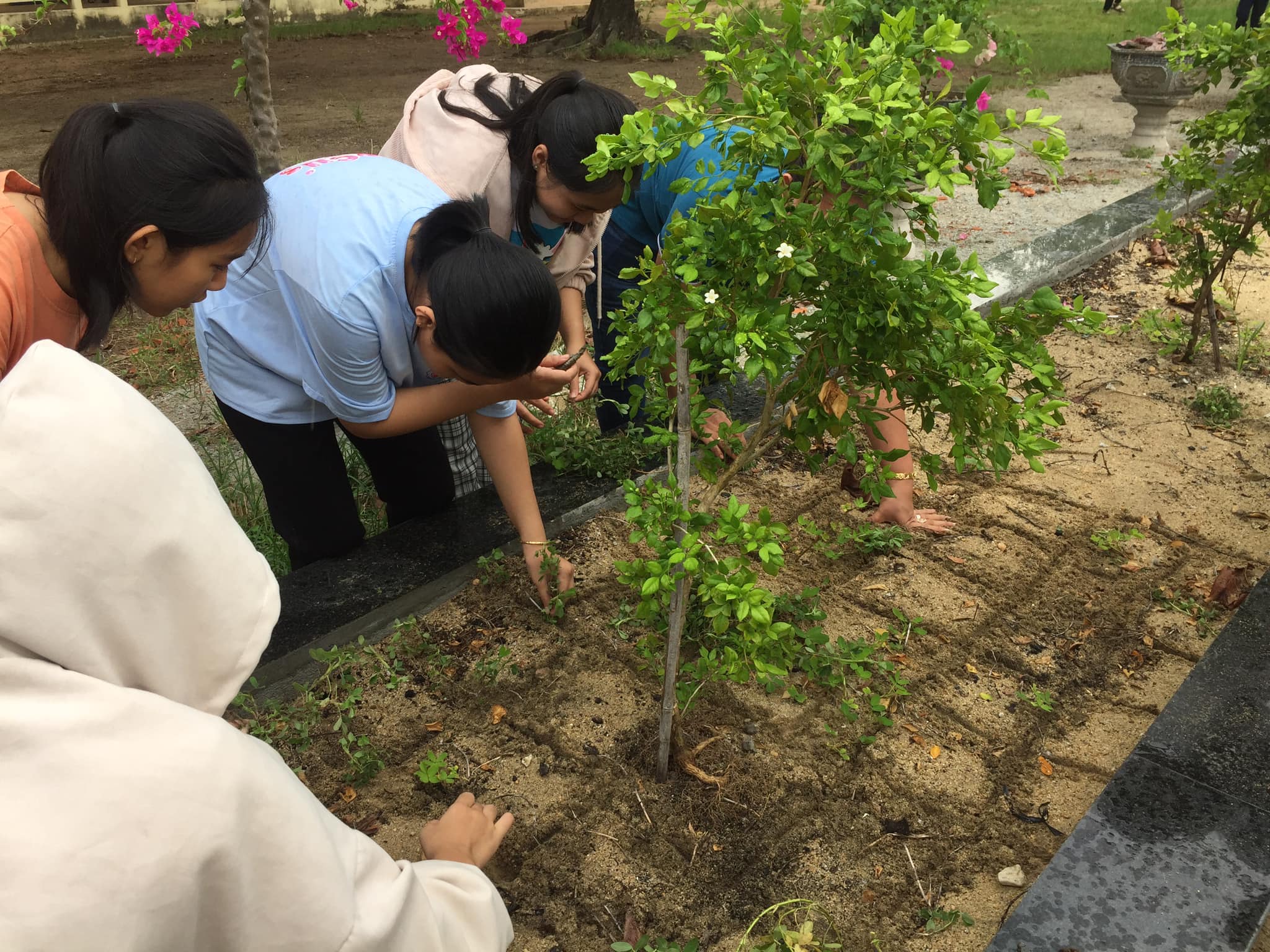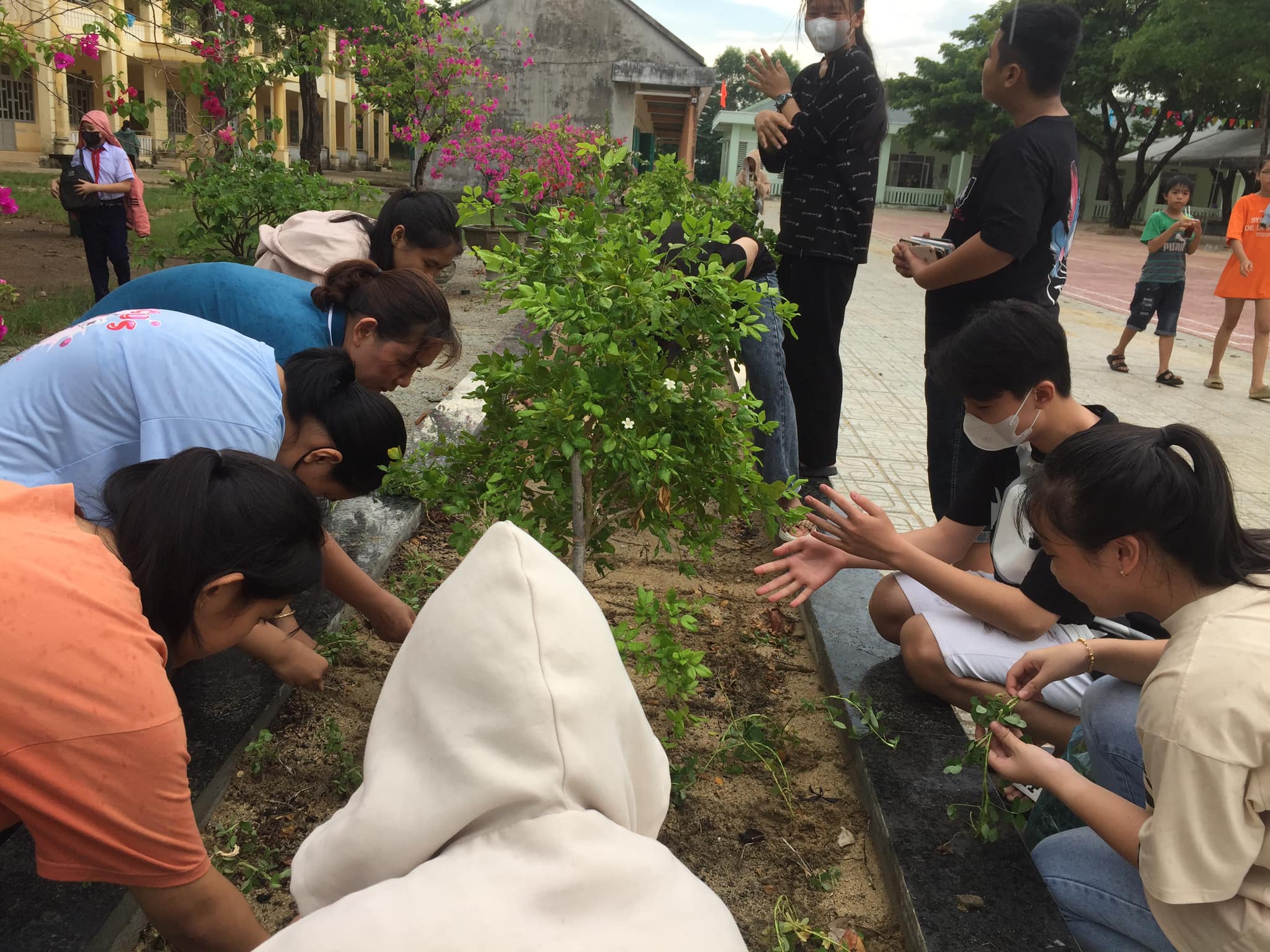Trồng và chăm sóc bồn hoa, vệ sinh chuẩn bị khai giảng năm học mới
