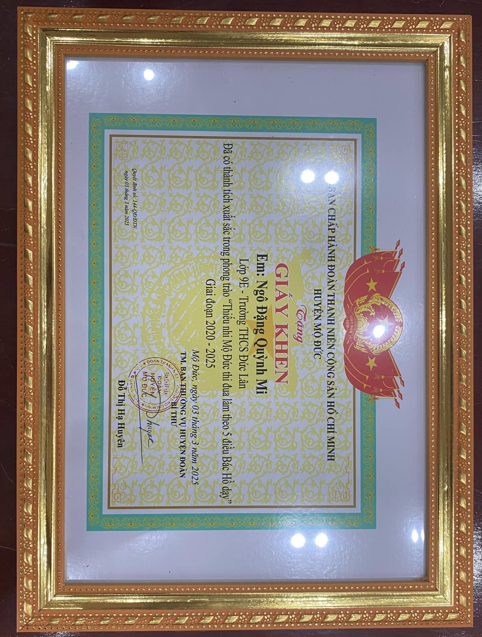 T/M Liên đội xin chúc mừng em: Ngô Đặng Quỳnh Mi, Nguyễn Bảo Yến, Nguyễn Ngọc Nhất Thiên, Nguyễn Minh Hải.