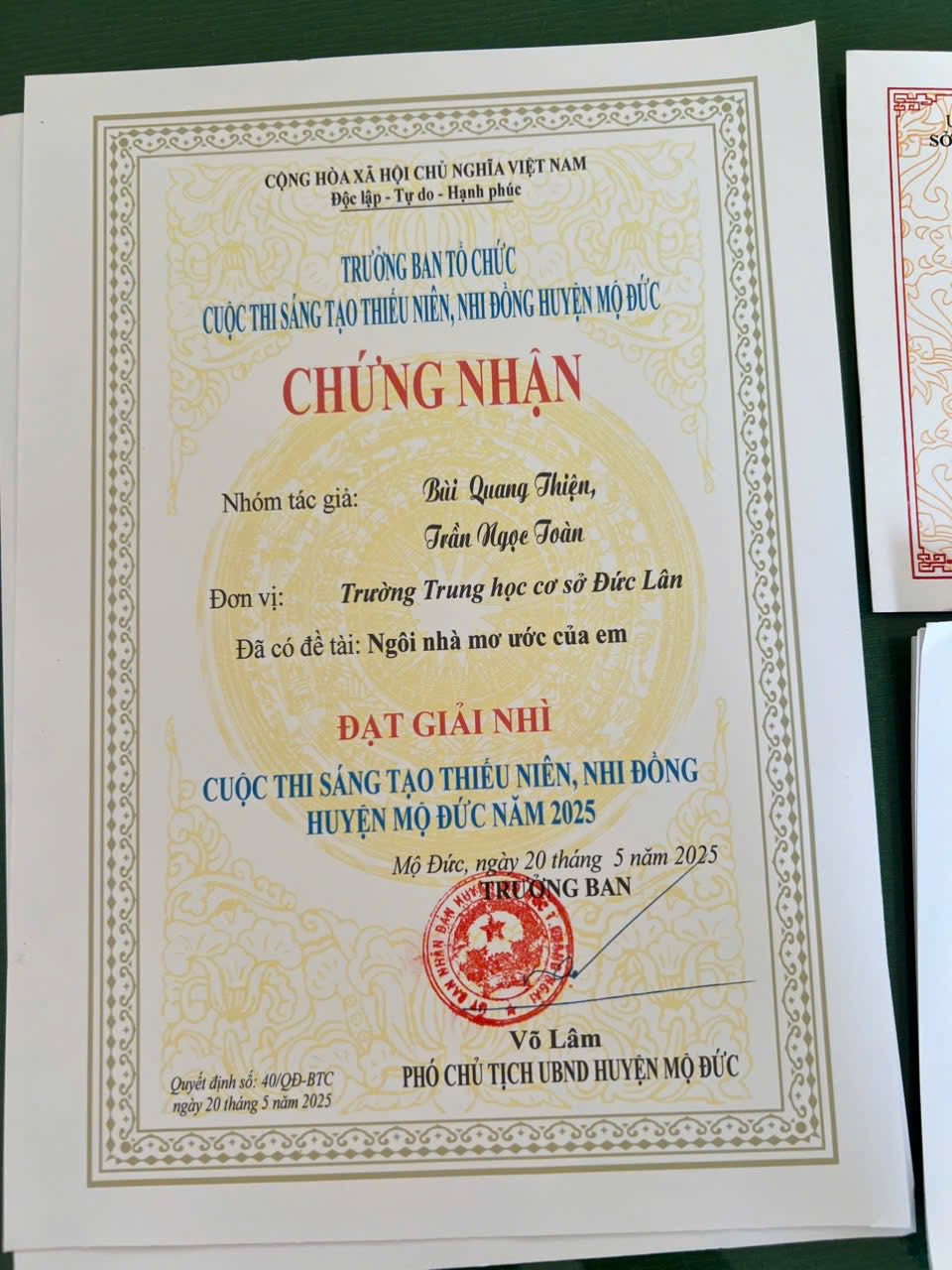 Thông qua Cuộc thi nhằm phát hiện, bồi dưỡng và tạo điều kiện môi trường cho tài năng trẻ phát triển ý tưởng, mô hình, sản phẩm sáng tạo của mình. T/M liên đội xin chúc mừng 2 em: Nguyễn Ngọc Anh Hùng và Lâm Chí Khiêm đã đạt giải khuyến khích trong cuộc.
