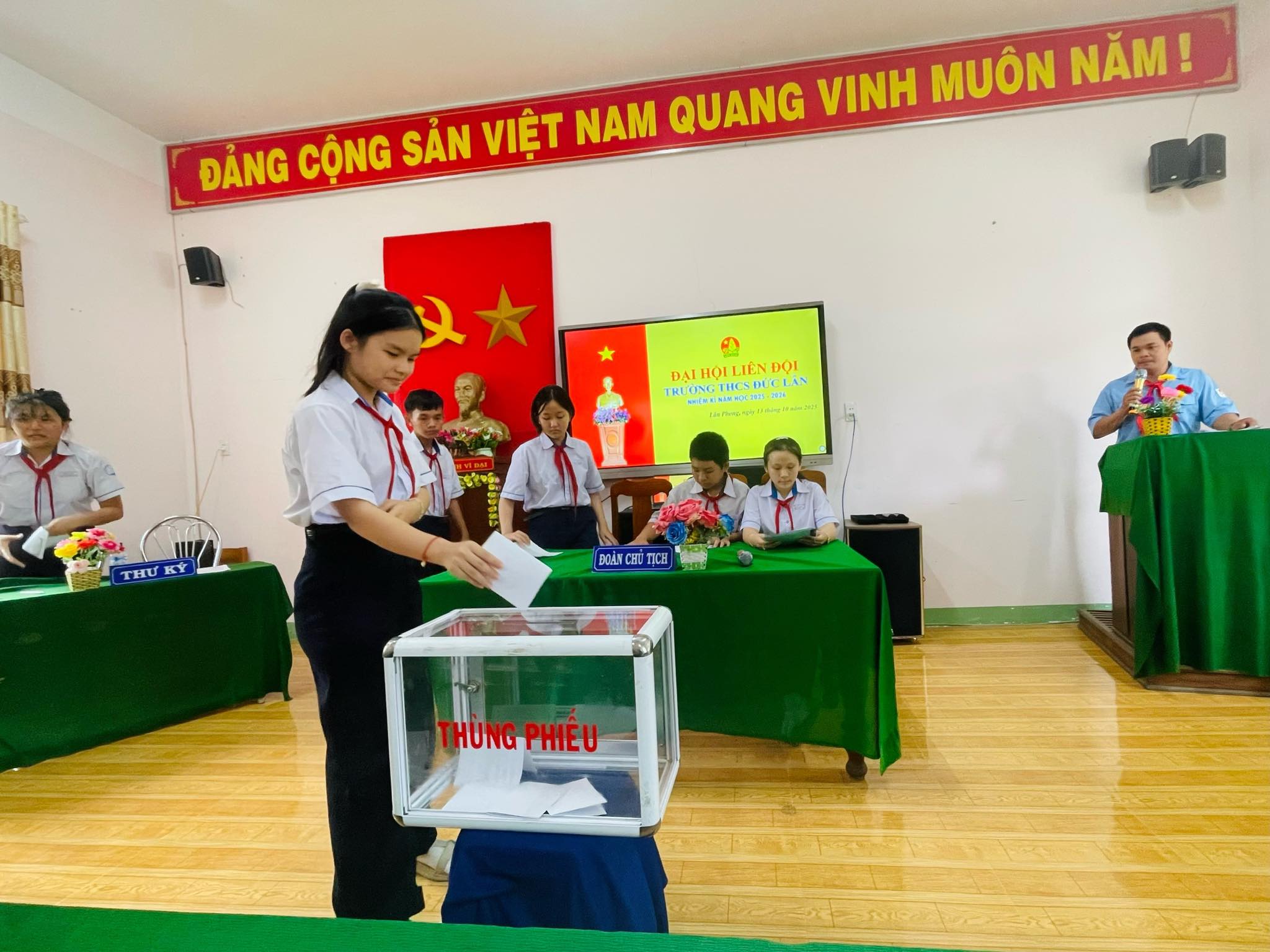 Các em đội viên về dự đại hội đã thể hiện được tính dân chủ và khách quan trong việc bầu cử Ban chỉ huy Liên đội nhiệm kỳ năm học 2025-2026. Đại hội đã bầu 21 bạn Ban chỉ huy Liên đội Các bạn là những đội viên tiêu biểu có phẩm chất đạo đức tốt, có năng lực hoạt động Đội và có tinh thần trách nhiệm cao trong mọi công việc. Tại đại hội, Ban chỉ huy Liên đội hứa sẽ quyết tâm thực hiện tốt thắng lợi mọi mục tiêu trong năm học mới của liên đội